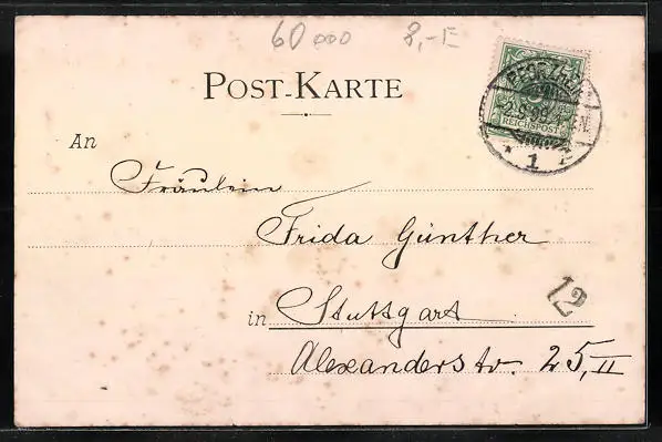 alte Ansichtskarte, gelaufen 1899, guter Zustand