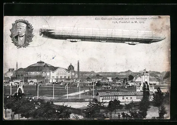 AK Frankfurt a. M., Exz. Graf Zeppelin und sein lenkbares Luftschiff, ILA 1909