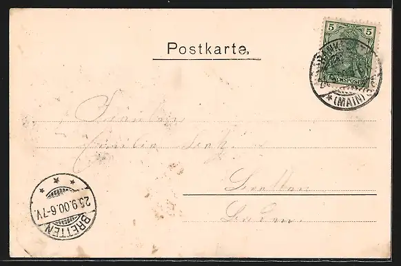 alte Ansichtskarte, gelaufen 1900, guter Zustand