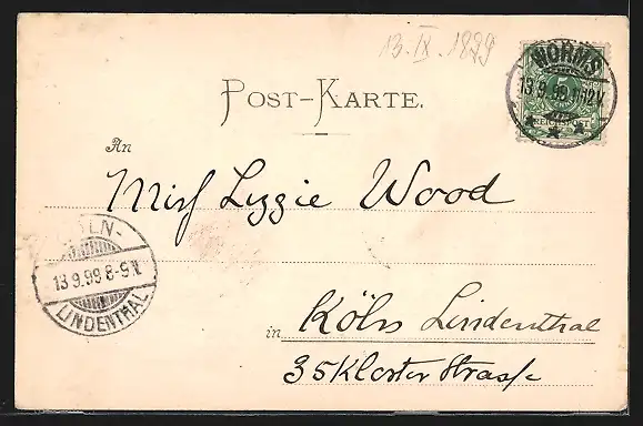 alte Ansichtskarte, gelaufen 1899, Eckknick re. mittig, Stempelspur, guter Zustand