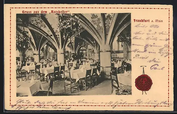 AK Frankfurt a. M., Gasthaus Rathskeller, Innenansicht