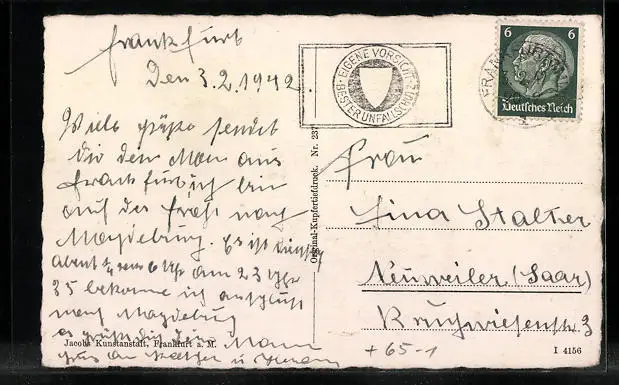 alte Ansichtskarte, gelaufen 1942, Eckknicke oben, Stempelspur, guter Zustand