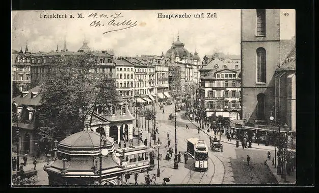 AK Frankfurt a. M., Hauptwache und Zeil, Strassenbahn