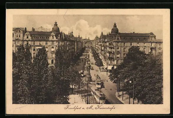 AK Frankfurt a. M., Kaiserstrasse mit Strassenbahn
