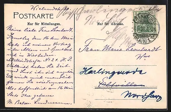 alte Ansichtskarte, gelaufen 1908, Eckknick re. unten, guter Zustand