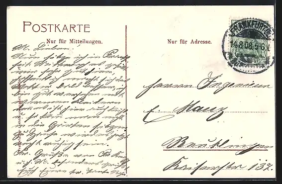 alte Ansichtskarte, gelaufen 1908, Stempelspur, guter Zustand