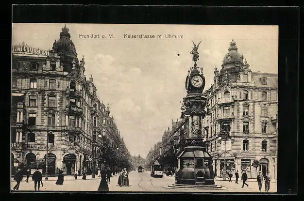 AK Frankfurt a. M., Kaiserstrasse mit Uhrturm
