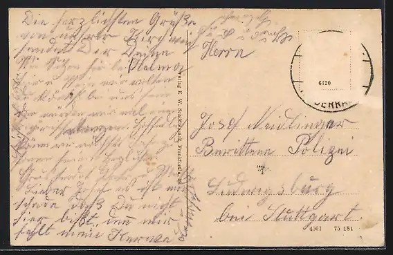 alte Ansichtskarte, gelaufen, Briefmarke entfernt, rückseitig Oberflächenschaden, guter Zustand