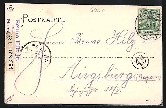 alte Ansichtskarte, gelaufen 1905, rückseitig Klebe- und Papierreste, guter Zustand