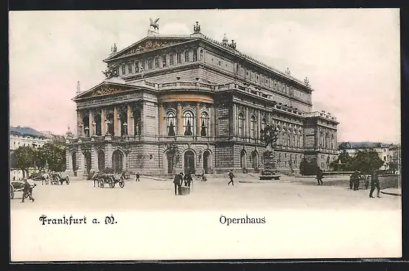AK Frankfurt a. M., Opernhaus mit Denkmal