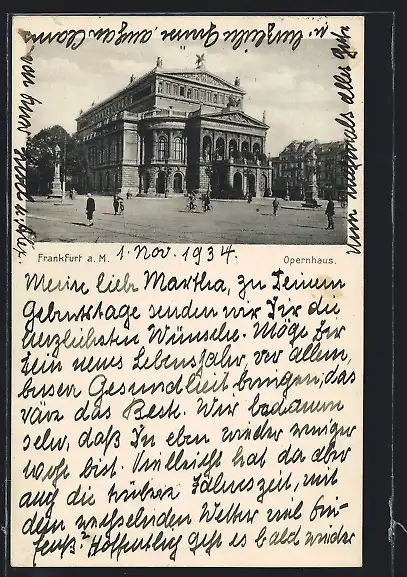 AK Frankfurt a. M., Opernhaus mit Denkmal