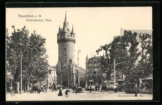 AK Frankfurt a. M., Partie am Eschenheimer Thor mit Strassenbahnen