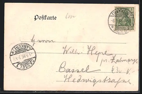 alte Ansichtskarte, gelaufen 1905, Eckknick oben li., Stempelspur, guter Zustand