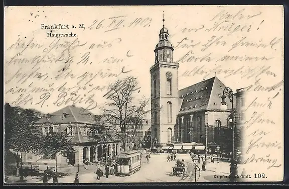 AK Frankfurt a. M., Partie an der Hauptwache mit Strassenbahn