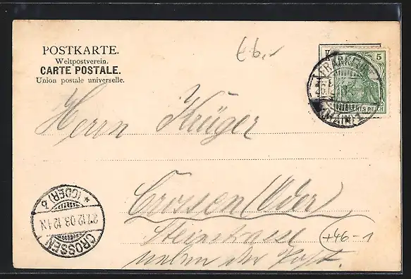 alte Ansichtskarte, gelaufen 1903, Stempeldurchbruch oben li.