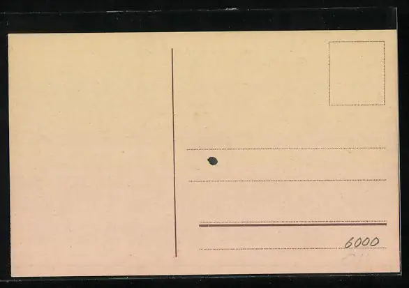 Personenbezogene Daten auf der Rückseite der Karte wurden durch blauen Textmarker unkenntlich gemacht. Die blauen Stellen sind auf die Vorderseite durchgeweicht und wirken sich negativ auf das Postkartenfoto aus