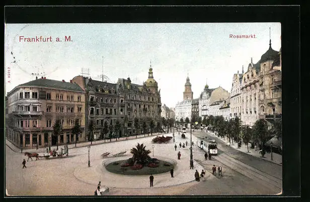 AK Frankfurt a. M., Rossmarkt mit Strassenbahn