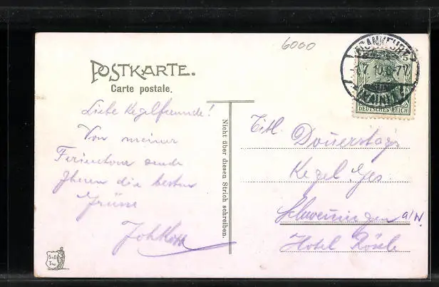 alte Ansichtskarte, gelaufen 1910, minimaler Einriss re. oben, Stempelspur, guter Zustand