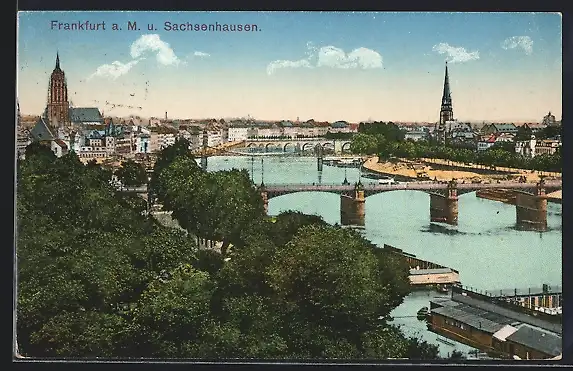 AK Frankfurt a. M., Sachsenhausen, Uferpartie mit Kirche