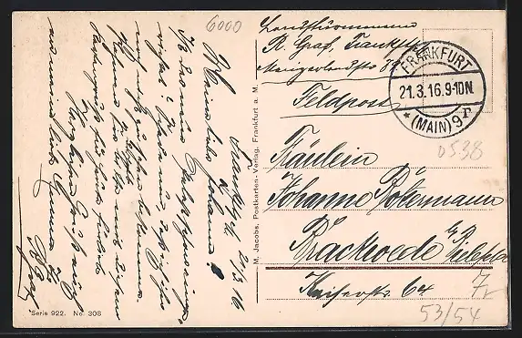 alte Ansichtskarte, gelaufen 1916, guter Zustand