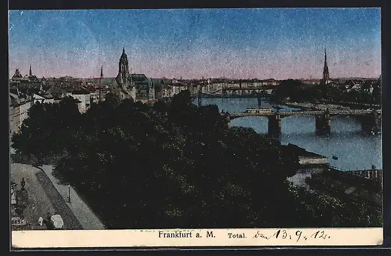 AK Frankfurt a. M., Stadtansicht mit Flusspartie