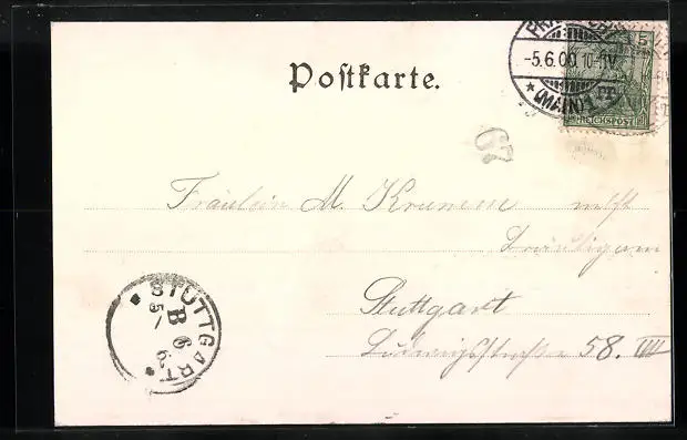 alte Ansichtskarte, gelaufen 1900, guter Zustand