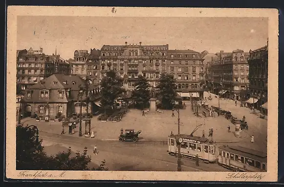 AK Frankfurt a. M., Strassenbahn auf dem Schillerplatz