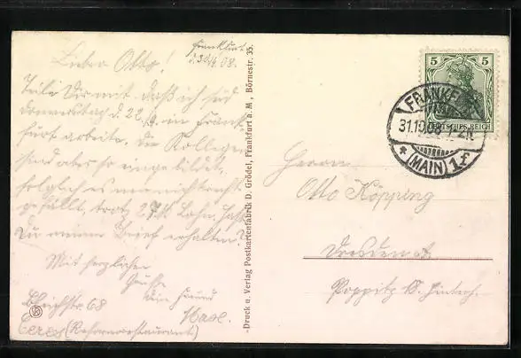 alte Ansichtskarte, gelaufen 1908, guter Zustand