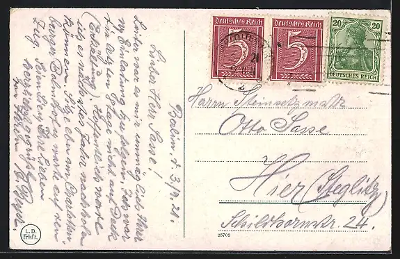 alte Ansichtskarte, gelaufen 1921, guter Zustand