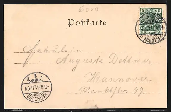 alte Ansichtskarte, gelaufen 1901, Stempelspur, guter Zustand