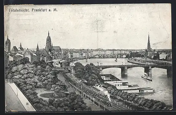 AK Frankfurt a. M., Totalansicht mit Kirche
