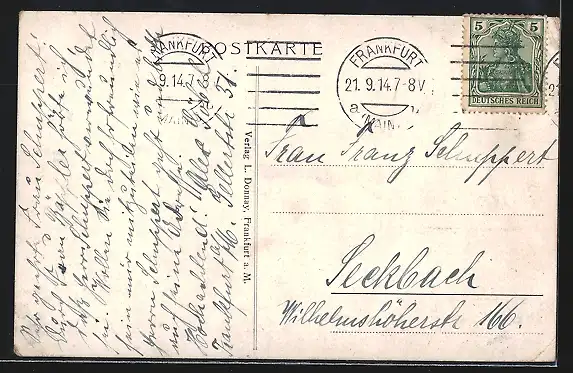gelaufen 1914, Eckknicke re. oben u. li., guter Zustand