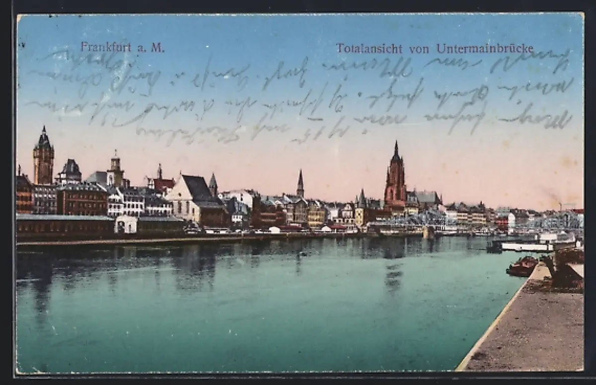AK Frankfurt a. M., Totalansicht von Untermainbrücke