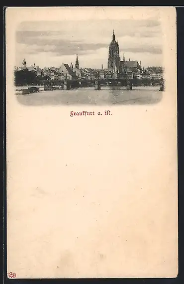 AK Frankfurt a. M., Uferpartie mit Kirche