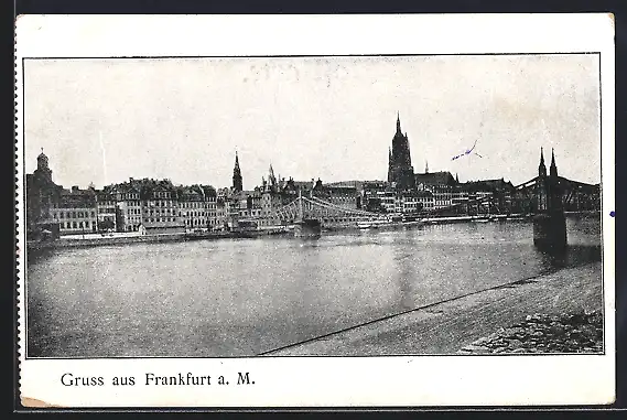 AK Frankfurt a. M., Uferpartie mit Kirche