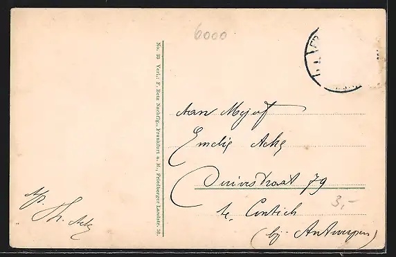 alte Ansichtskarte, gelaufen, Briefmarke entfernt, rückseitig Oberflächenschaden, Stempelspur, guter Zustand
