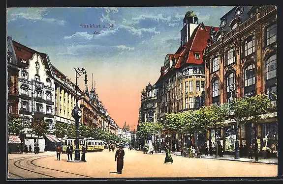 AK Frankfurt a. M., Zeil mit Strassenbahn