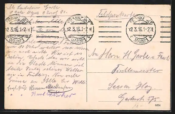 alte Ansichtskarte, gelaufen 1916, Eckknick li. oben, guter Zustand