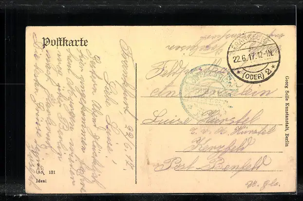 alte Ansichtskarte, gelaufen 1917 als Feldpost, guter Zustand