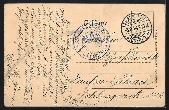 alte Ansichtskarte, gelaufen 1914, Stempelspur, guter Zustand