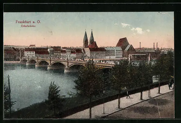 AK Frankfurt a. O., Oderbrücke aus der Vogelschau