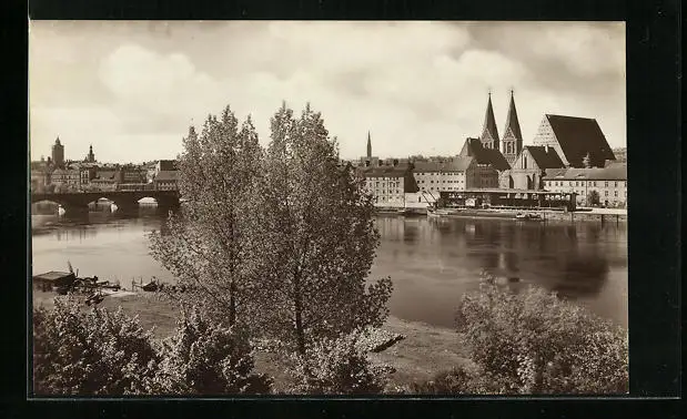AK Frankfurt a. O., Ortsansicht mit Flusspartie