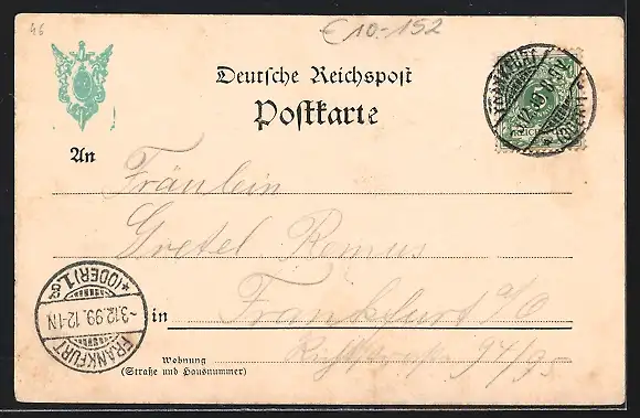 alte Ansichtskarte, gelaufen 1899, guter Zustand