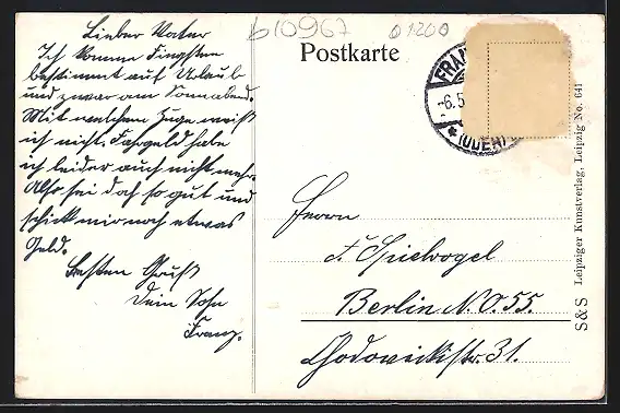 alte Ansichtskarte, gelaufen, Briefmarke entfernt, guter Zustand