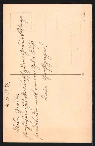 Personenbezogene Daten auf der Rückseite der Karte wurden durch blauen Textmarker unkenntlich gemacht. Die blauen Stellen sind auf die Vorderseite durchgeweicht und wirken sich negativ auf das Postkartenfoto aus