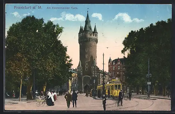 AK Frankfurt am Main, Am Eschenheimer Turm, Strassenbahn, Leute an Haltestelle