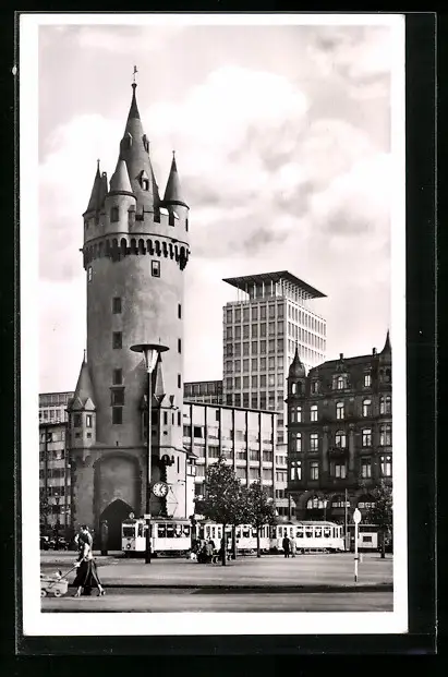 AK Frankfurt am Main, Eschenheimer Turm mit Blick auf das Fernmeldeamt