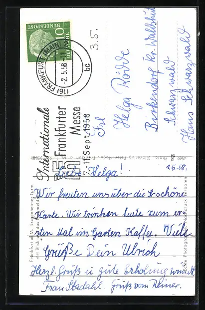 alte Ansichtskarte, gelaufen 1958, guter Zustand