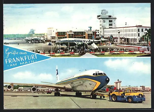 AK Frankfurt am Main, zwei Ansichten vom Flughafen