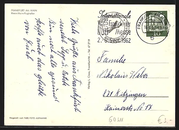 alte Ansichtskarte, gelaufen 1962, Eckknick links oben, guter Zustand